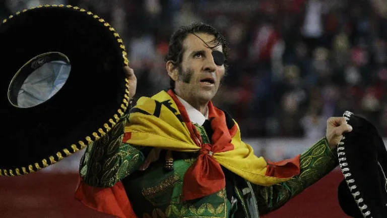 Despedida del jerezano Juan José Padilla, vestido de verde con hojas de laurel, que recibe a su primer toro de rodillas. El toro se le frenaba por su falta de casta y fuerza. Le pegó un feo derrote en el pecho al torearlo por el lado derecho que lo dejó aturdido. Padilla enderezó y le echó casta como es su costumbre. Mató de tres cuartos muy aliviado.