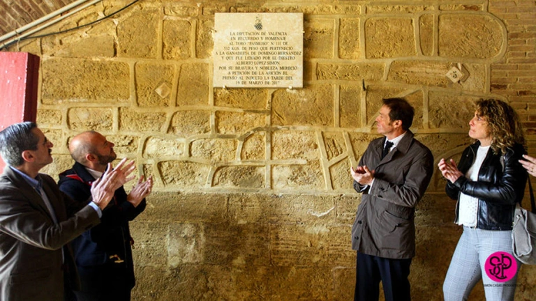 Este sábado, coincidiendo con la corrida de Garcigrande-Domingo Hernández que se lidiaba en el octavo festejo de la Feria de Fallas, la Diputación de Valencia ha querido rendir homenaje a la ganadería charra que el pasado año, el día de San José, trajo a esta plaza a Pasmoso, astado que fue indultado y lidiado en manos de López Simón.