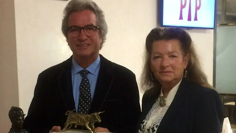 El ganadero Robert Margé recogiendo el premio de la Peña Taurina Peñaflorense