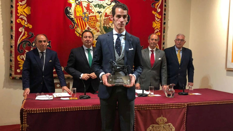 Pepe Moral recibiendo el trofeo 'Mejor Lección Torera' que concede el Aula Taurina de Sevilla