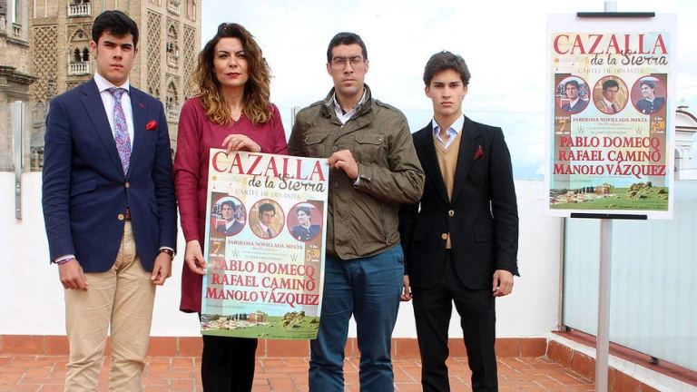 La Casa de la Provincia de Sevilla ha sido escenario esta mañana de lunes de la presentación del cartel dinástico programado para el próximo 7 de abril en la plaza de toros de Cazalla de la Sierra, Sevilla.