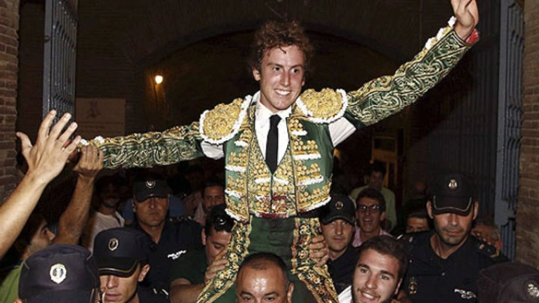 Román en su salida a hombros de la plaza de toros de Valencia en la pasada Feria de Fallas. ARCHIVO