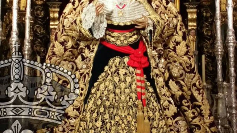 María Santísima de la Caridad en su Soledad, uno de los Sagrados Titulares de la Hermandad de El Baratillo, luce ya en su paso de palio la nueva saya donada por el diestro José Antonio Morante de la Puebla, hermano de esta cofradía tan vinculada al mundo taurino de Sevilla.