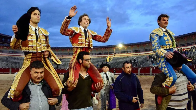 Juan del Álamo, Román y Eugenio de Mora, en su salida a hombros este sábado en Toledo