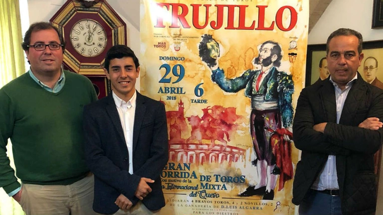 Dos figuras acompañarán al novillero local en la tradicional Feria del Queso de Trujillo. Esta mañana ha sido presentado, por el alcalde Alberto Casero, el empresario Joaquín Domínguez y el novillero José Rojo, el cartel de la corrida de toros mixta que se celebrará en la localidad cacereña de Trujillo, ilustrado por el artista extremeño José Tomás Pérez Indiano.