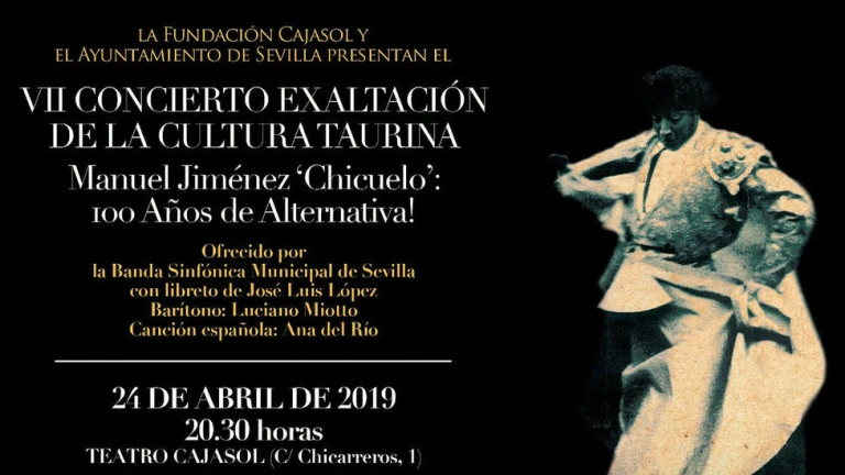 La VII edición del Concierto de Exaltación a la Cultura Taurina, que cada primavera se hace presente en el teatro de la Fundación Cajasol como preámbulo al ciclo de corridas de toros de la Feria de Abril, estará dedicado al torero de la Alameda de Hércules sevillana, Manuel Rodríguez “Chicuelo”, con motivo de la celebración del centenario de su alternativa.