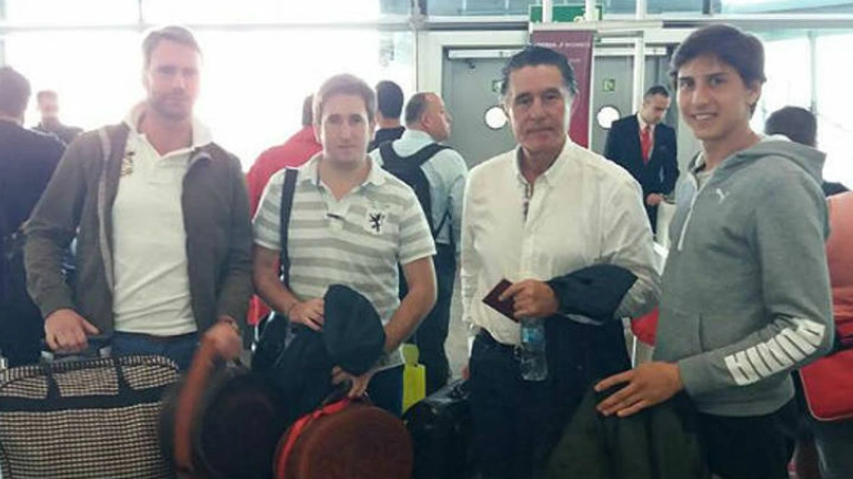 Andrés Roca Rey en Barajas antes de partir junto a miembros de su cuadrilla rumbo a Lima. PRENSA R.R.