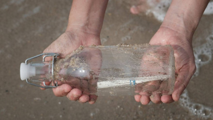 Un recuerdo que quisieron dejar los trabajadores que realizaron el monumento en el que se halló la botella