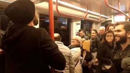 Con motivo del Festival Rasmia, celebrado el pasado 1 de noviembre y organizado por el Área de Juventud del Ayuntamiento de Zaragoza y por Noche de Poemia, el barcelonés Salva Soler tuvo la oportunidad de ser el primer participante en recitar sus poemas en el tranvía de la ciudad y uno de los textos que interpretó fue 'De Cine'.
