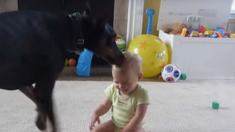 El juego entre el bebé y el perro acabó de la mejor manera posible: todos se divirtieron