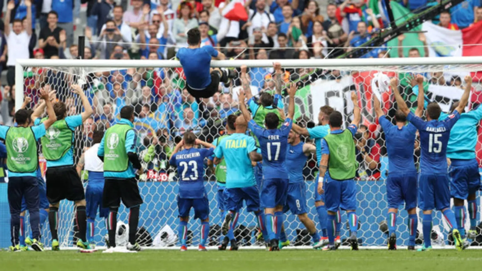 Buffon; Barzagli, Bonucci, Chiellini; Florenzi (Darmian, m. 84), Parolo, De Rossi (Motta, m. 53), Giacherini, De Sciglio; Éder (Insigne, m. 80) y Pellé.