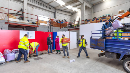 En las instalaciones situadas en el polígono de San Cibrao das Viñas se almacena la ayuda enviada desde los concellos de la provincia para su posterior envío