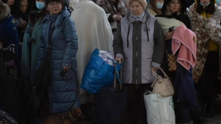 La Casa do Concello se ilumina con los colores de la bandera de Ucrania y muestra una pancarta con el lema "No a la guerra"