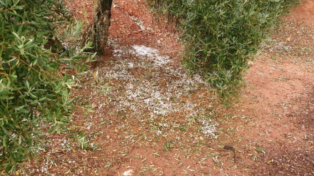 El granizo caido, del tamaño de cánicas, provocó destrozos en casi la mitad del fruto de los olivos afectados por las tormentas