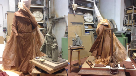 La obra 'Luz', de Óscar Alvariño, recoge el momento en el que una niña enciende el hachón de un cofrade mientras arrecia el viento