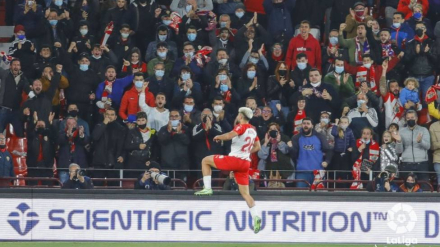 Los rojiblancos pierden ante el Girona tras haber fallado hasta un 'doble' penalti en los últimos minutos. Mantienen el segundo puesto, con un punto de ventaja sobre el Valladolid.