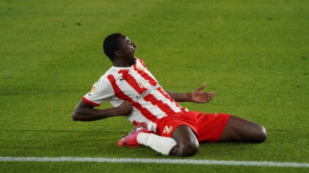 El Almería ve cortada su excelente racha ante un gran Sabadell. Sadiq y Makaridze, los mejores. El 2-2 llega tras un libre indirecto señalado al portero georgiano por un resbalón.