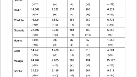 Se trata de la jornada con más decesos en un día desde que comenzó la pandemia. Almería, única provincia andaluza con menos de 100 nuevos positivos.