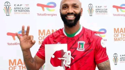 El atacante lidera con tres goles la victoria de Guinea Ecuatorial 4-2 y su selección lidera el grupo en la Copa de África.
