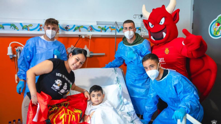 La plantilla realizó la tradicional visita navideña a los niños ingresados en Son Espases. Día intenso, también se celebró la comida de veteranos y visita a la Peña S.Llorenç