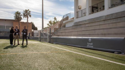 Los equipos de fútbol base muestran pancartas de "Protección ya" tras varios traumatismos de futbolistas con los muros en los campos de Eivissa