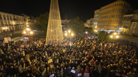 Cientos de personas, convocadas por la Plataforma Feminista de Lugo, se concentraron ante el Ayuntamiento a primera hora de la noche de este jueves