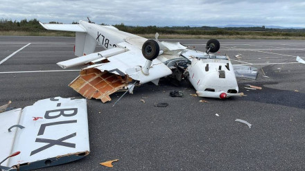 El piloto, de 46 años, solo sufrió heridas leves en un tobillo, a pesar de que el aparato quedó totalmente destrozado sobre la pista