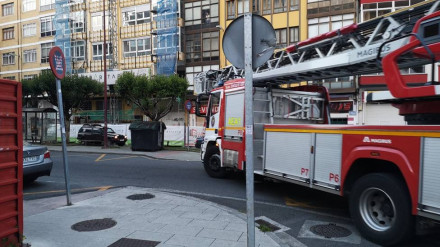 Los Bomberos rescataron al joven de su vivienda, en la Rolda das Fontiñas, que tuvo que ser cortada al tráfico durante los trabajos de extinción