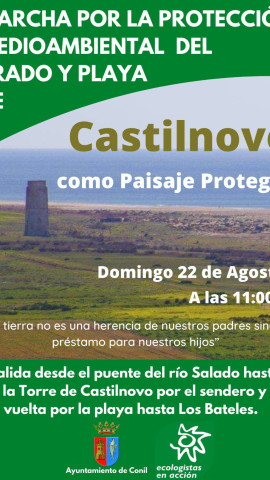 El Ayuntamiento de Conil hace un llamamiento a la ciudadanía a participar en la marcha por la Protección medioambiental del Prado y Playa de Castilnovo como Paisaje Protegido,