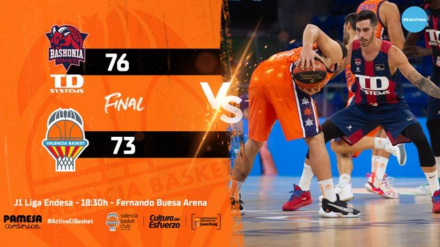 Valencia Basket cae (76-73) contra Baskonia con un triple recibido faltando un segundo para el final