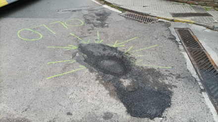 Recogemos las consecuencias del mal estado de calles y viales en Santiago: un vehículo rompió dos ruedas en un mismo bache. A una furgoneta, "la broma le salió en 400 euros"