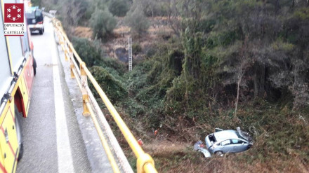 La conductora de un coche ha resultado herida tras precipitarse desde 15 metros por un barranco en Navajas (Castellón)