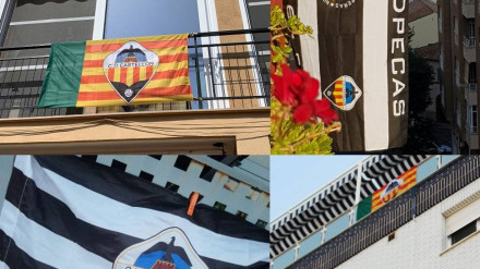 La ciudad se tiñe de banderas del CD Castellón en balcones y ventanas
