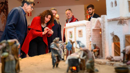 La alcaldesa y el obispo de Almería han visitado el Nacimiento, que ha sido elaborado por la Hermandad del Prendimiento.