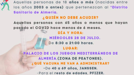 Podrán acudir a recibir la vacuna contra el coronavirus quienes residan en el Distrito Almería sin necesidad de ser llamados.