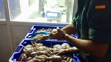 La Guardia Civil también ha intervenido tres arcones con capacidad de 100 litros cada uno, repletos de diferentes especies de peces, en una embarcación en el Puerto de Roquetas.