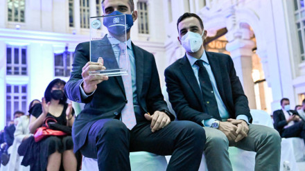 El alcalde, Ramón Fernández-Pacheco, recoge la distinción de manos de la ministra Reyes Maroto, en el marco de FITUR 2021.