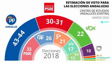 Traducido en escaños, este resultado arrojaría entre 43 y 44 escaños para el PP-A en el Parlamento andaluz, frente a los 26 que tiene en la actualidad