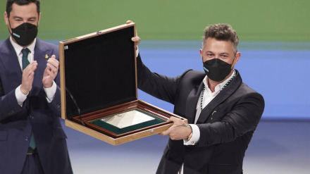 El cantante y compositor Alejandro Sanz ha recibido este lunes, 28 de febrero, junto al compositor Manuel Alejandro, el Título de Hijo Predilecto de Andalucía