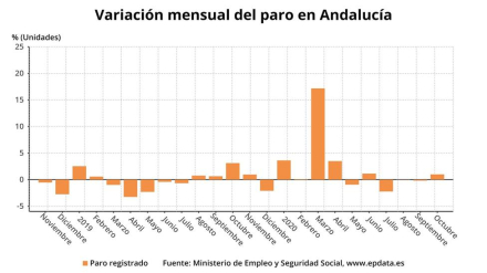 El paro ha aumentado en la Andalucía en 178.293 personas en el décimo mes de 2020, lo que representa una subida del 22,65% en comparación con el mismo mes del año anterior