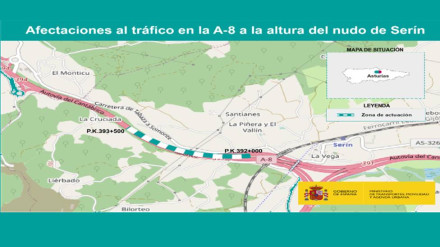 Hasta el 8 de octubre quedará sólo un carril en cada sentido, entre Lugones y Matalablima. Además, comienzan las obras en el nudo de Serín