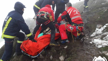 La niebla impidió al helicóptero llegar a la zona y el equipo de rescate tuvo que subir a pie y bajar porteando a la mujer en una camilla
