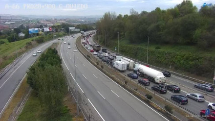 Un accidente sin heridos ha generado tres kilómetros de atasco en la Ronda Exterior de Oviedo, en sentido Gijón
