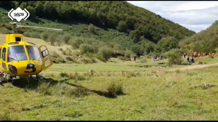 Tras una complicada operación de rescate por culpa del fuerte viento reinante en la zona, fue evacuado en helicóptero al Hospital de Arriondas