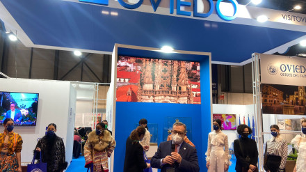 El concejal de Turismo y Congresos de la capital, Alfredo García Quintana, ha recibido a COPE Asturias en el stand del Ayuntamiento de Oviedo en Fitur