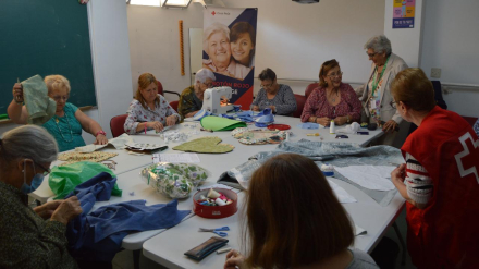 Un grupo de mujeres se reúne cada miércoles en el centro de participación de mayores de Cruz Roja para participar en un taller de costura
