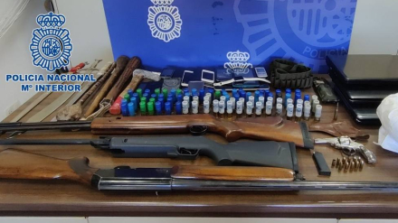 Se consiguen intervenir un total de cuatro armas de fuego, munición, varias armas blancas, 14 dispositivos móviles y 300 gramos de cogollos de marihuana