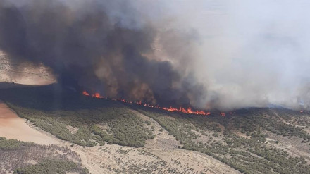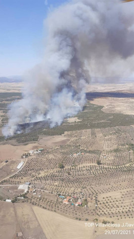 En un principio estaban trabajando en el lugar, por aire, dos helicópteros de transporte y extinción, dos aviones de carga en tierra y un avión de coordinación
