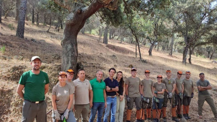 Este trabajo, que consiste en la extracción del corcho de los alcornoques, es una actividad manual que requiere destreza, conocimiento del árbol y una notable fuerza física