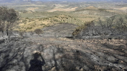 En la extinción del fuego, que en un principio se localizó en el término municipal de Iznalloz, han trabajado durante la noche 43 bomberos forestales